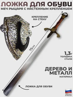 Ложка для обуви "Меч рыцаря" с настенным креплением (75 см)
