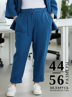 Брюки льняные на резинке больших размеров с высокой посадкой