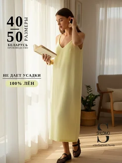 Платье льняное длинное на бретельках с открытой спиной