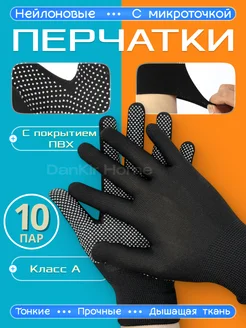 Перчатки нейлоновые чёрные, с микроточкой 10 пар