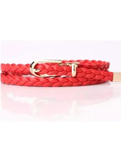 Тонкий пояс плетеный женский красный