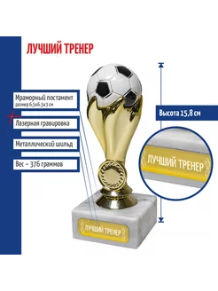 Кубок Футбольный мяч "Лучший тренер" на мраморном постаменте