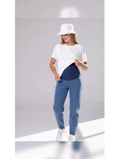 Джинсы для беременных синие бойфренд МОМ для будущих мам