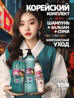 Корейский шампунь бальзам и спрей для волос с кератином