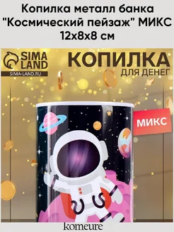 Копилка металл банка "Космический пейзаж" МИКС 12х8х8 см