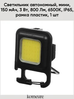 Светильник автономный мини 150 мАч 3 Вт 800 Лм 6500К IP65