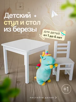 Детский стол и стул для малышей от года деревянный из березы