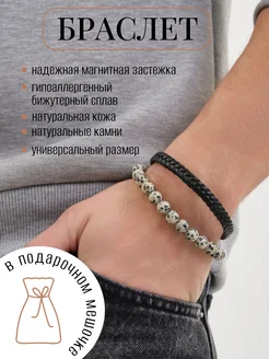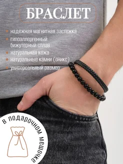 Браслет на руку двойной из натуральной кожи и камней