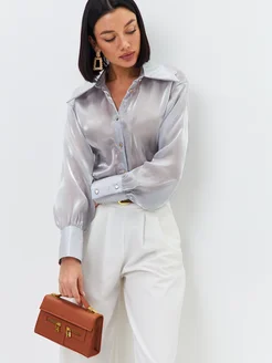Блузка из органзы с отложным воротником