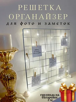 Органайзер-решетка Мудборд настенный с гирляндой