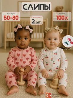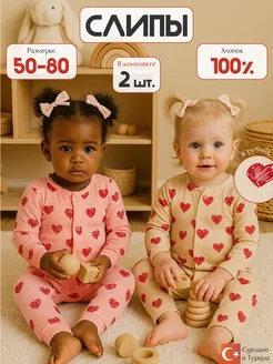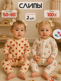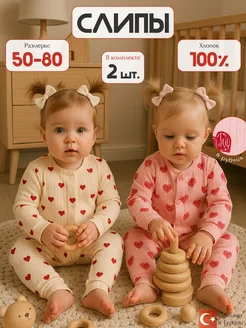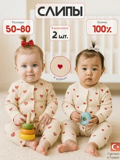 Комбинезон слип для новорожденных в рубчик комплект 2 шт
