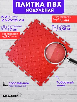 Модульная плитка ПВХ красная напольное покрытие 25х25