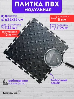 Модульная плитка ПВХ черная 25х25 (34 плитки =1,96м2)