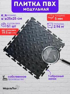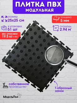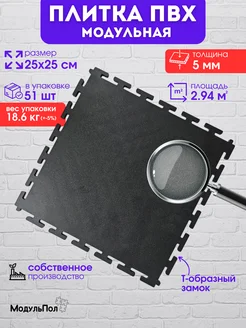 Модульная плитка ПВХ черная напольное покрытие 25х25