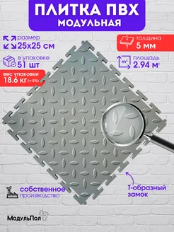 Модульная плитка ПВХ серая напольное покрытие 25х25