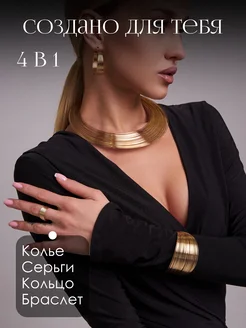 Бижутерия комплект украшений кольцо+колье+серьги+браслет