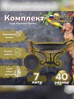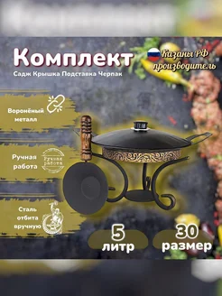 Посуда Садж 29см с подставкой и черпаком для углей+крышка