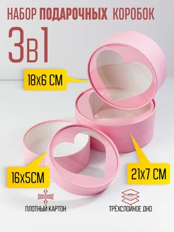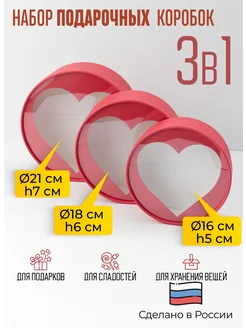 Круглая подарочная коробка Сердце, набор 21х7, 18х6 и 16х5