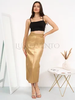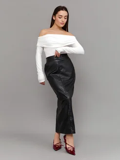 Юбка карандаш миди длинная с разрезом эко-кожа