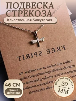 Подвеска кулон стрекоза с цепочкой бижутерная золотистая