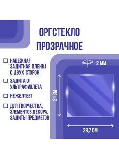 Оргстекло (акрил) 2*297*210 мм (29,7х21 см) А4 прозрачное