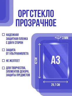 Оргстекло (акрил) 3*297*420 мм (29,7х42 см) А3 прозрачное