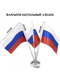 Настольный флагшток с тремя флагами России (металл)