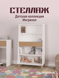 Стеллаж для игрушек и книг в детскую напольный с ящиком