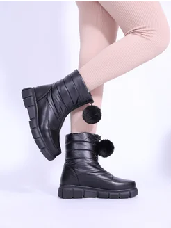 Зимние ботинки дутики на толстой подошве