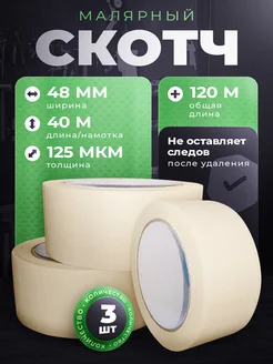 Скотч малярный широкий 120 метров 3 рулона по 40м