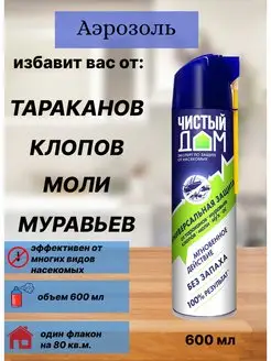 Аэрозоль от тараканов блох клопов Чистый дом 600 мл