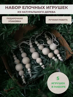 Набор деревянных елочных украшений ручной работы