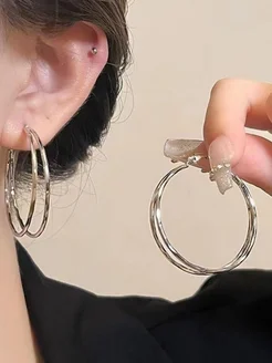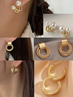 Серьги кольца плетеные вечерние набор 3 пары золотистые