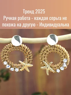 Серьги висячие из ротанга кольца Бохо пляжные золотистые