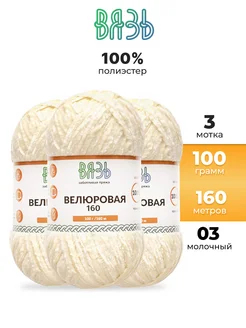 Пряжа для вязания плюшевая Велюровая 100 г 160 м, 3 шт