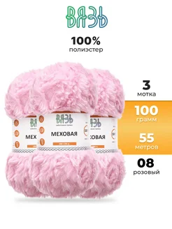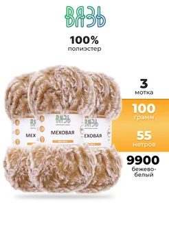 Пряжа пушистая Меховая 100 г 55 м, 3 шт