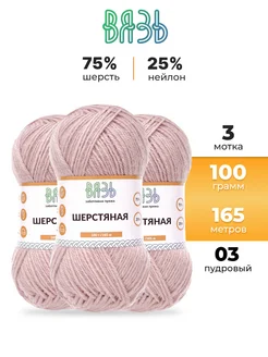 Пряжа Шерстяная 100 гр 165 м, 3 шт