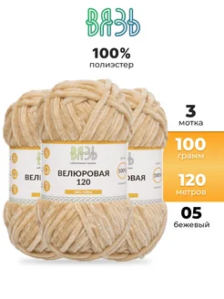 Пряжа для вязания Велюровая 100гр 120м 3 шт
