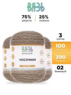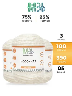 Пряжа для вязания носочная шерстяная 100г 390м 3 шт