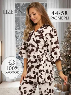 пижама со штанами новогодняя кимоно с поясом