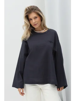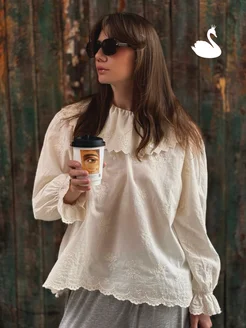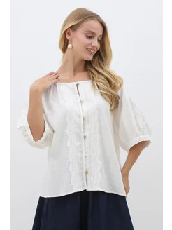 Блузка нарядная с вышивкой оверсайз с длинным рукавом