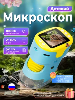 Микроскоп детский карманный с камерой и подсветкой лупа