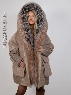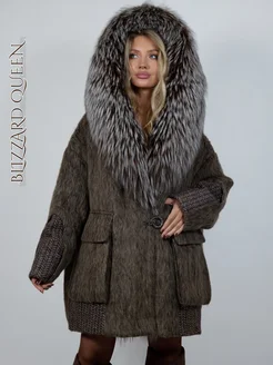 Пуховик с натуральным кашемиром и мехом чернобурой лисы