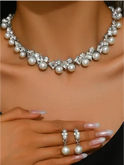 Комплект бижутерии колье с кольцом и серьги с жемчугом
