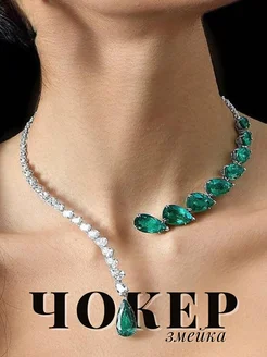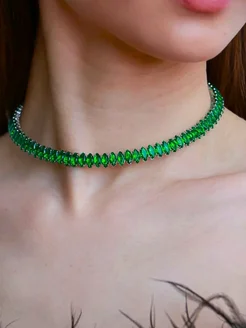 Чокер-колье обруч с зелеными изумрудными камнями дорожка