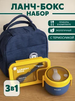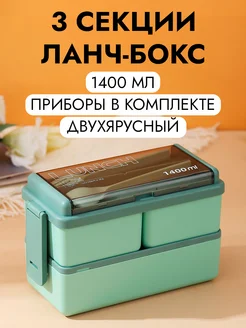 Ланч бокс контейнер с приборами для еды двухуровневый