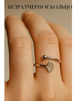 Безразмерное серебристое кольцо с перламутровой вставкой