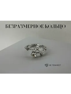 Безразмерное элегантное серебристое кольцо с каплей вставкой