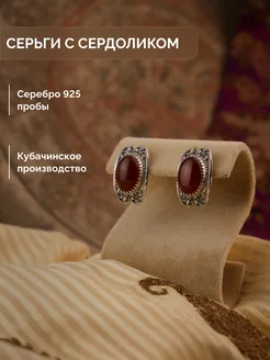 Серьги этно Кубачи с сердоликом серебро 925