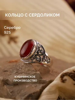 Кольцо серебряное с сердоликом этно Кубачи серебро 925